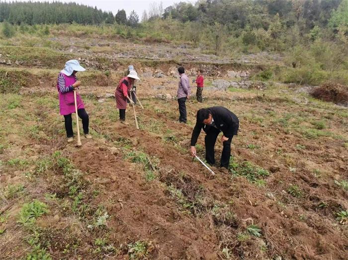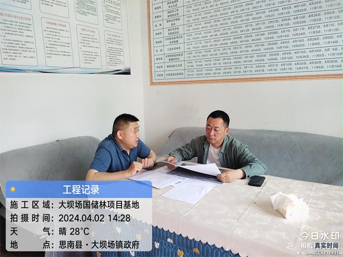 4月2日,国储林项目驻点人员到大坝场镇政府对接筑山村国储林项目示范点进场施工事宜。