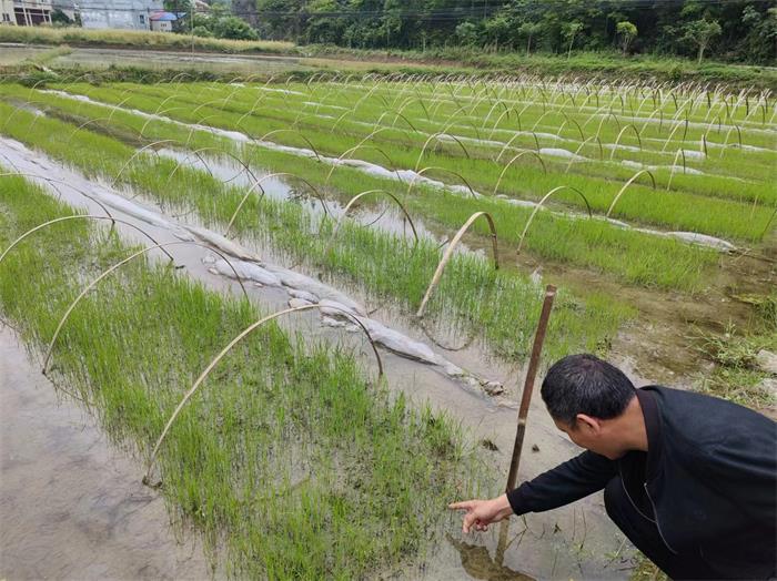 4月24日,万胜种业公司到青杠坡镇水稻制种基地查看水稻苗床长势情况。
