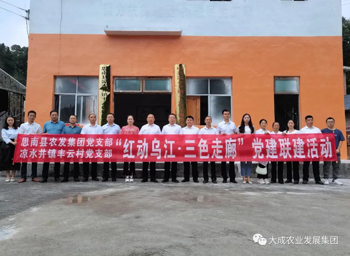 8月31日,思南大成农业发展集团有限责任公司党支部书记王登喜率队到凉水井镇丰云村开展“红动乌江·三色走廊”基层党建联建系列活动,凉水井镇党委副书记、镇长龙玉兰及相关人员参加活动。