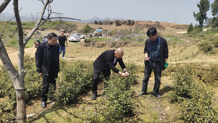 4月8日,集团公司党委书记、董事长王登喜,党委委员、财务总监刘天华到香坝镇调研茶叶产业。