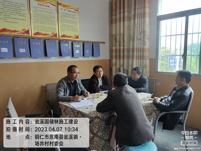 4月7日,晨碧林业公司工作人员到瓮溪镇场井村协调处理国储林项目四期流转工作相关事宜。