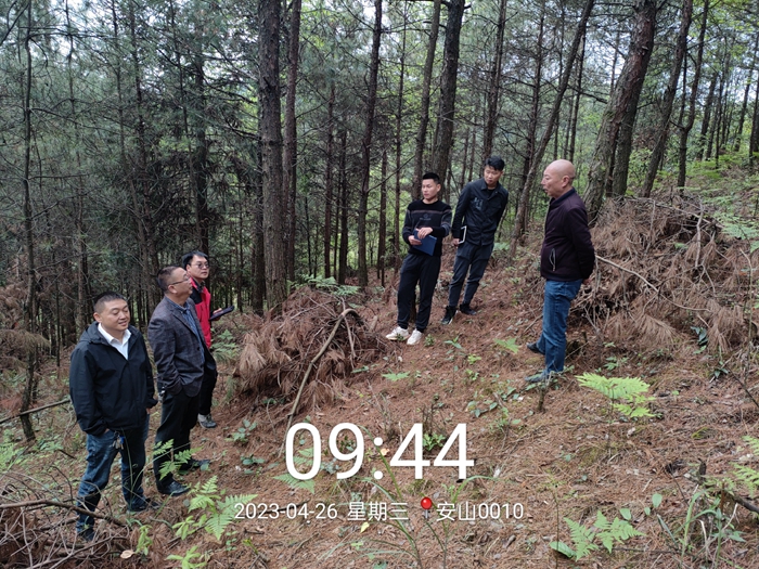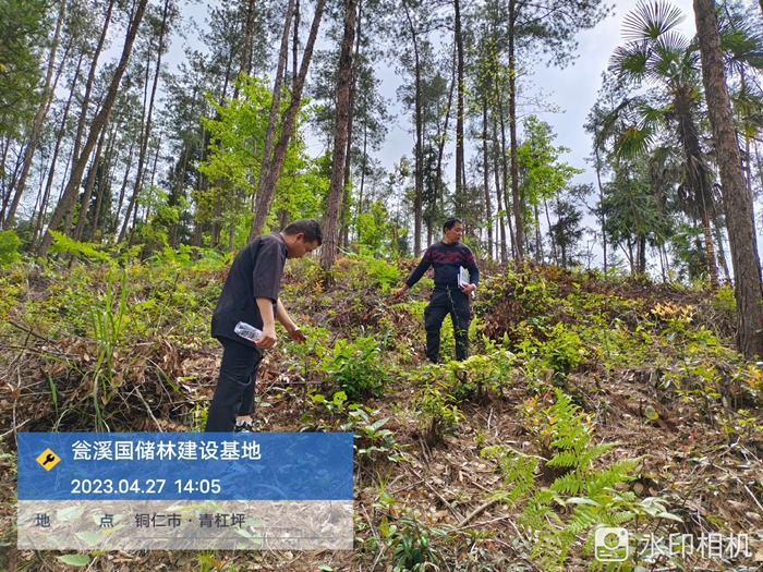 4月25日,晨碧林业公司到瓮溪镇联盟村对国储林二期分户勘界结果进行质检。