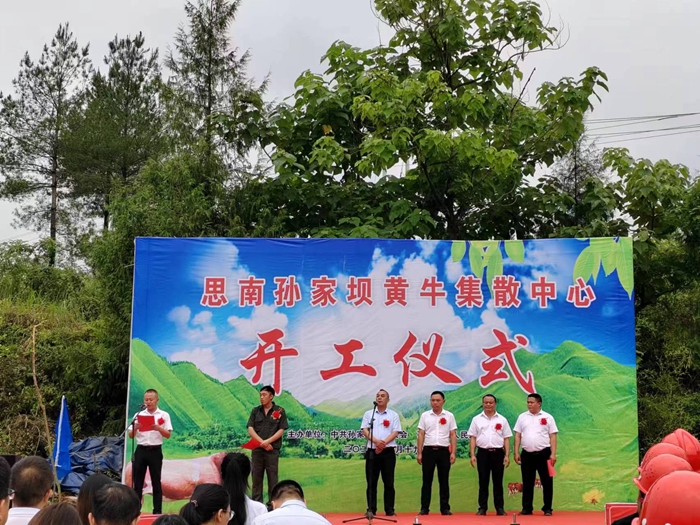 6月19日,孙家坝镇政府举行思南县黄牛育肥中心项目开工仪式。集团公司副总经理周文丰参加仪式。