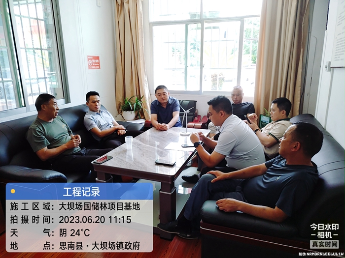 6月20日,晨碧林业公司到大坝场镇政府协调筑山村国储林项目建设示范点施工事宜。