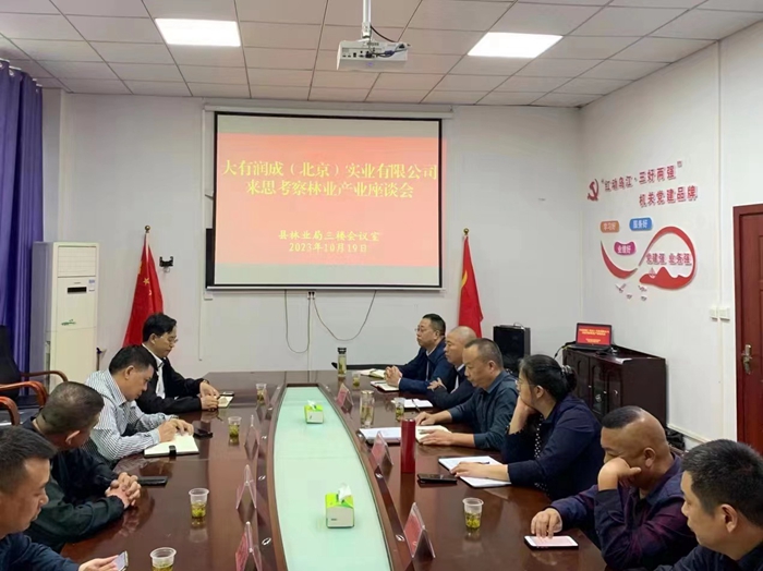 10月19日,集团公司党委书记、董事长王登喜,党委委员、副总经理李学亿到县林业局参加大有润成(北京)实业有限公司来思考察林业产业座谈