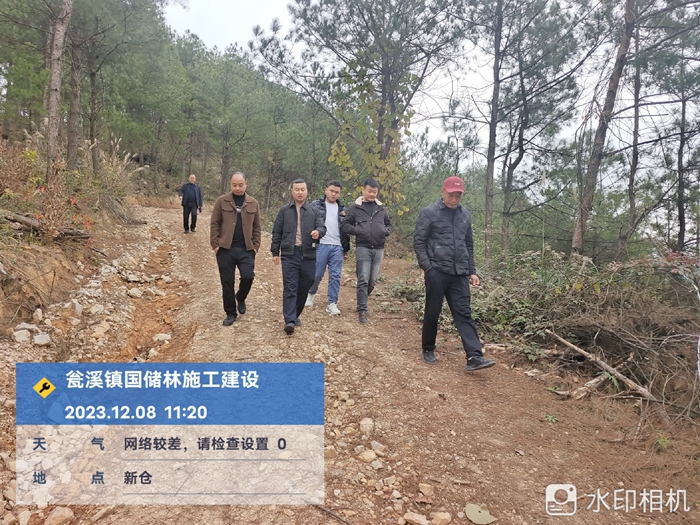 12月8日,国储林项目驻点人员、监理方、施工方到瓮溪镇国储林项目建设基地开展国储林项目林间道路验收工作。