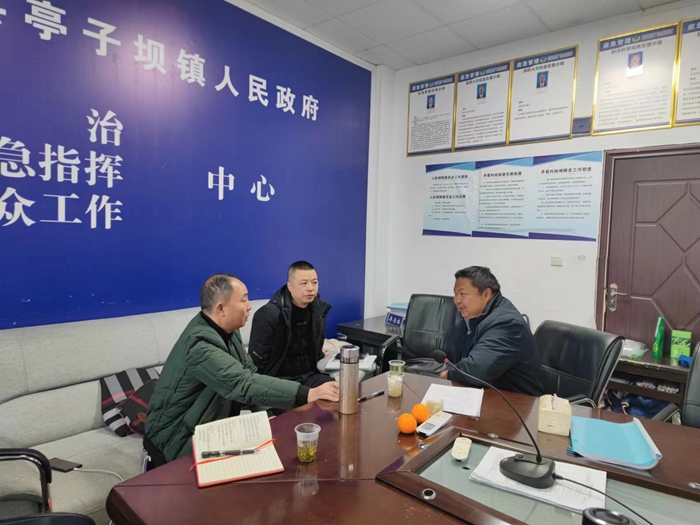 12月19日 ,晨碧林业公司副总经理吴国海一行到亭子坝镇对接国储林项目三期勘界分户相关事宜。