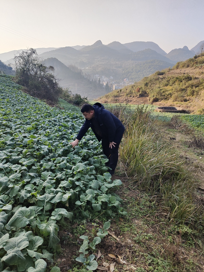 12月24日,万胜种业公司副总经理崔跃到许家坝镇油菜制种基地查看油菜生长情况。