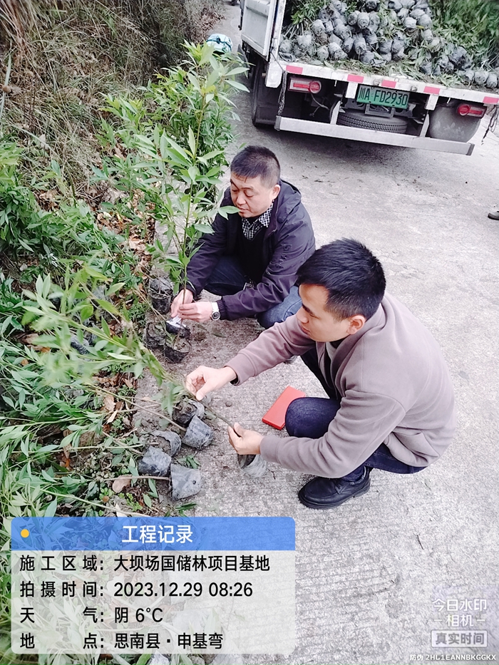 12月29日,晨碧林业公司与监理方到大坝场镇国储林项目建设基地核实验收楠木苗。