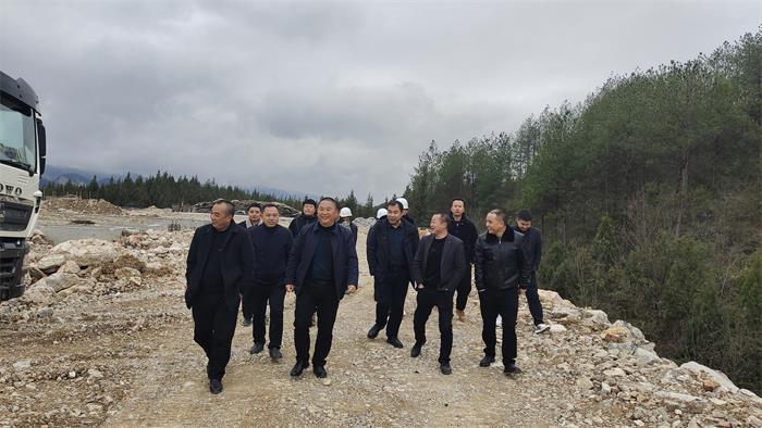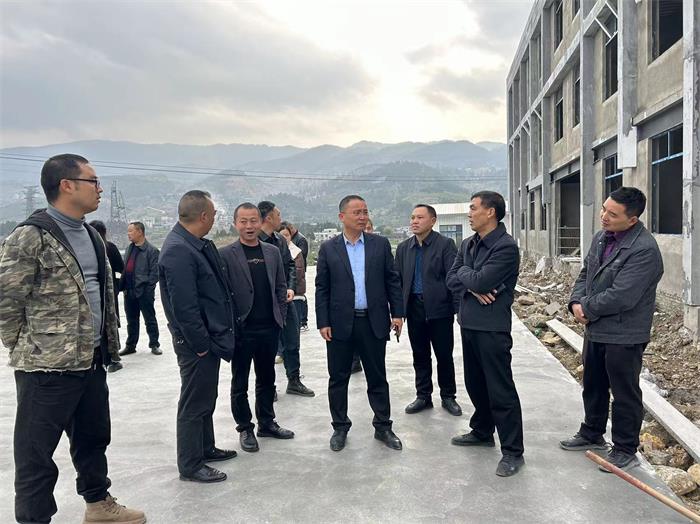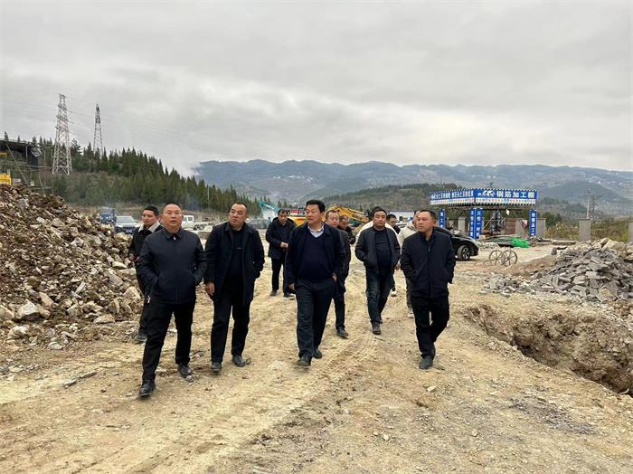 2月22日,集团公司党委书记、董事长王登喜,党委委员、纪委书记张继辉,副总经理周文丰到孙家坝镇督查思南黄牛育肥中心项目施工进度及安全工作。