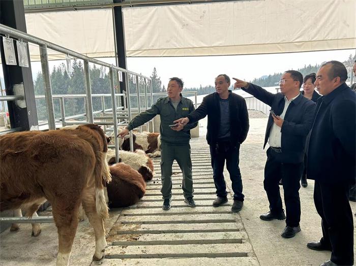 3月6日,铜仁市万山区农业农村局一行到思南黄牛育肥中心项目建设点调研省外引牛相关情况。县农业农村局党组成员、副局长冉江华,集团公司副总经理周文丰参与调研。